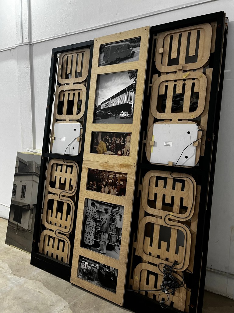 The exhibition itself has journeyed from Liverpool to Ghana, carefully packed and stored at Jamestown Cafe before being installed in early January. Two freestanding pavilions display archival photographs from the Unilever Archive, accompanied by newly commissioned 3D-printed models created by Liverpool School of Architecture students and archival films that bring the stores’ bustling atmosphere to life. The pavilions themselves, fabricated using CNC routers by our expert technical team at Liverpool lead by James Galliford, echo the modernist architectural language of the stores they document.