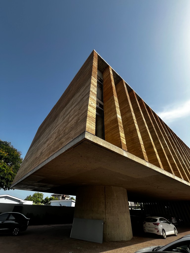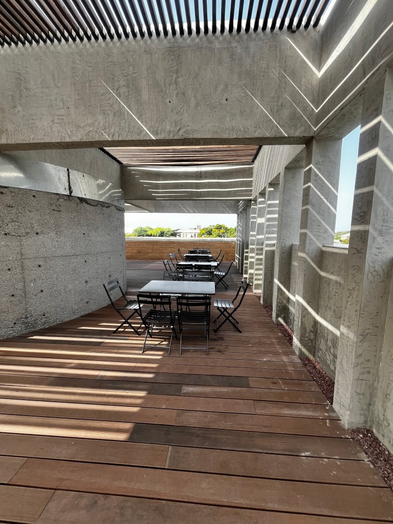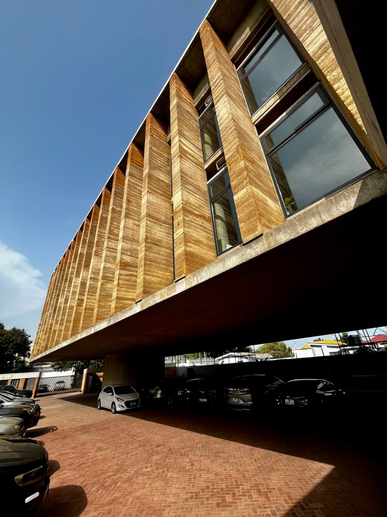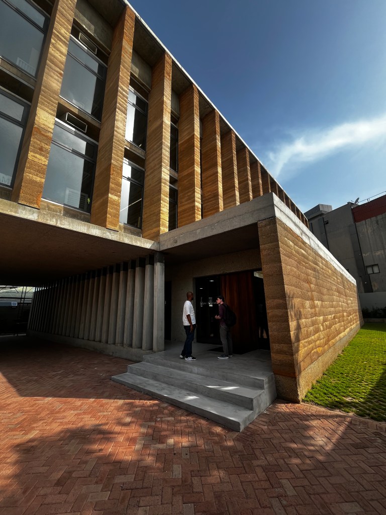I’m intrigued by the precast panels and would like to learn more about the detailing. How was it possible to transport rammed earth – surely there’s a significant amount of cement in these panels to hold them together, and how is the top of the panels protected from the heavy rain? I’ll have to investigate further. Read more and see far better photos here: https://www.archdaily.com/1036713/backyard-community-club-deroche-projects. We saw at nearby Dot Atelier the flashing interventions being made around the windows to project the adobe ‘sandcrete’. I admire both buildings for experimenting and developing such uplifting and carefully designed spaces.