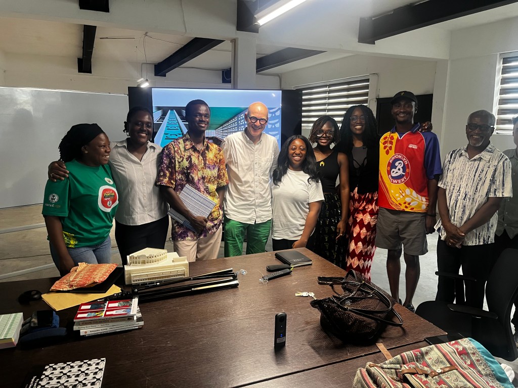 On 15th January, we celebrated the opening of “Shopping Emporiums of West Africa: The Kingsway Stores” at Jamestown Cafe and Gallery in Accra, marking a significant milestone in our ongoing research into the architectural and commercial legacy of the United Africa Company. The launch evening brought together an engaged audience including President of the Ghana Institute of Architects Tony Asare, Dr Abena Busia, and Ronnie Micallef, the incoming High Commissioner of Malta in Accra, for what proved to be a thought-provoking discussion about retail modernism, colonial commerce, and architectural heritage in West Africa. David Kojo Derban gave a wonderful opening talk to contextualise the exhibition, along with a wider welcome from cafe and gallery owner architect Joe Owusu Addo.