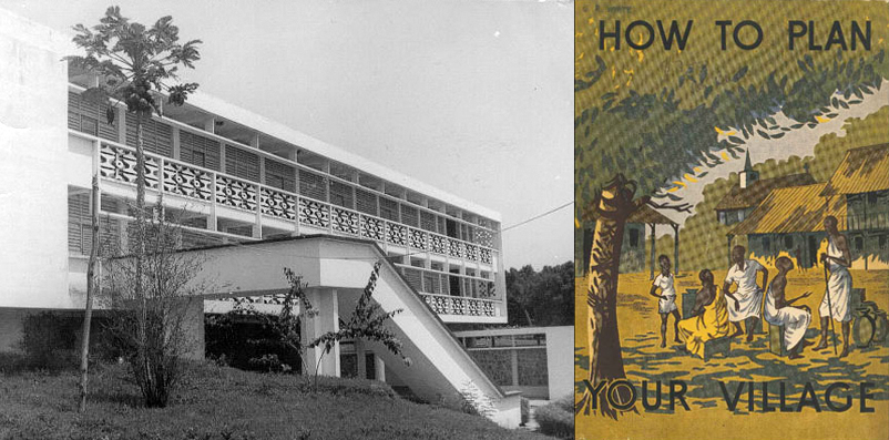 Maxwell Fry and Jane Drew, Mfantsipim School, Cape Coast, Ghana, 1947 / Alfred Edward Savige Alcock, How to Plan Your Village (London and New York, 1953), front cover