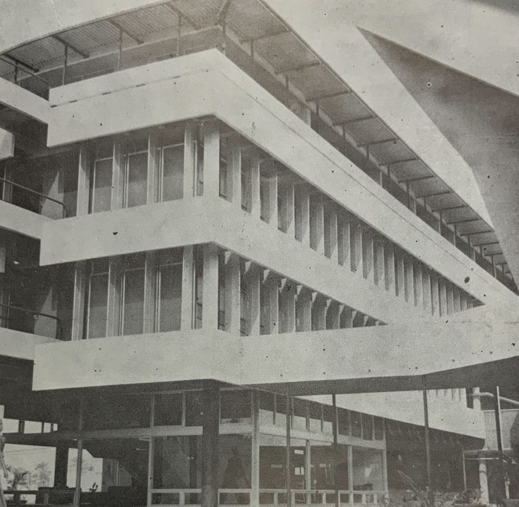 Whilst acknowledging this rapid growth and exciting possibilities, he also goes on to caution that more ‘research’ is required, greater collaboration should exist between architects, and that building components and materials were still being imported at prohibitive costs. Overly extravagant “prestige building” was also targeted whilst low-cost housing problems remained unresolved. Whilst the claims and hopes for air-conditioning now seem somewhat out-dated, his desire for a civic pride and community spirit, tree planting, and care of the environment is pertinent and all the more urgent. Godwin’s approach was to propose an “architecture of ventilators and sun breakers”, a lexicon that he viewed as, “increasingly identifiable as West African.”