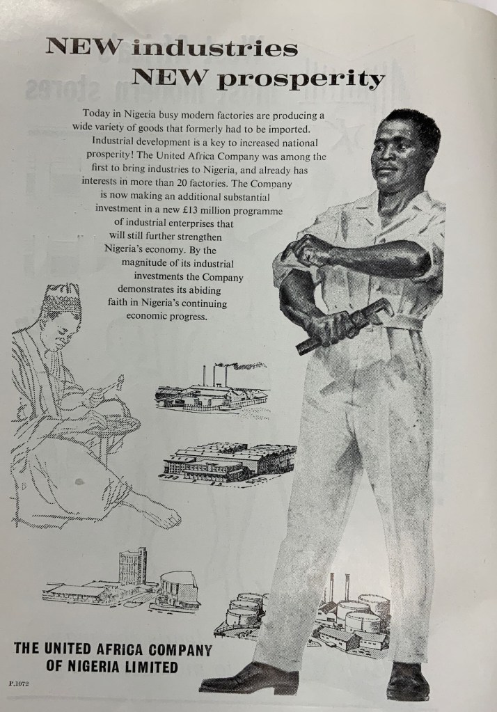 Nigeria magazine illustrates how UAC and other global companies shifted their approach and emphasis during the early Independence period. UAC was presenting its suite of businesses as nationalist, pro-development, and key partners in the country’s future. They rapidly placed an emphasis on real estate, finance, and industrial development, whilst curating a sophisticated advertisement and public relations campaign, through an arts and culture journal, to bolster their local credentials and legitimacy in the history of Nigeria.