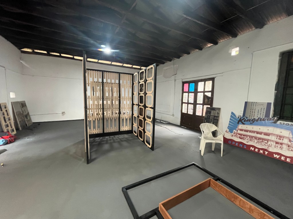 The exhibition is being extended and reimagined through a further collaboration with Allotey Bruce Konuah on a series of vinyl street banners that will be installed on the exterior walls of the gallery space, as well as on the old ruined Kingsway Stores portico located next door.