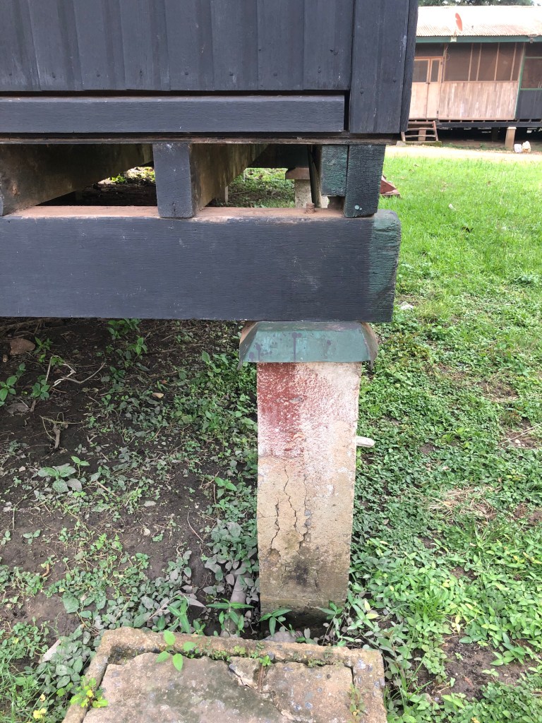 Theย Commonwealth Houseย design was very similar to houses we saw in the timber saw-mill town of Samreboi in Ghana – even down to the ant-trap detailing.ย