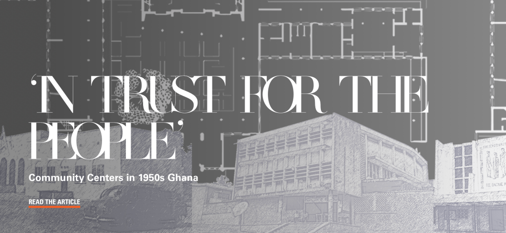 Have a look at the latest article from Design233 on Community Centers in Ghana, including the Accra Community Centre (paid for by the UAC) and Tarkwa Community Center (paid for by the Manganese Mining Company) – both designed by Fry and Drew. In addition to these modernist works the more formal and classically inspired centre at Kyebi is discussed – this centre is more of a mystery… We know it was funded by the Consolidated African Selection Trust (CAST)- but who designed it, and why did CAST commission such a lavish project?