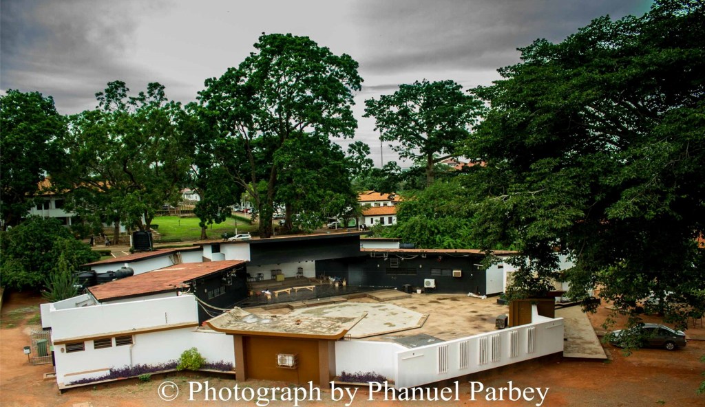 Anku further notes that the theatre was “replicated and relocated to the School of Performing Arts premises at the University of Ghana” – it’s unusual for a building to be entirely remade in a new location. The old site, as Anku notes, was near the Ambassador Hotel – this is now where the Mövenpick Hotel is located. Was the structure physically demolished, moved, and rebuilt? Perhaps the old site is where the National Theatre is located today?